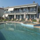1) Finikas Studios, 1. sprat, 2 osobe, sa francuskim ležajem (1,60m) ili 2 singl ležaja, kupatilom sa tuš kabinom, opremljenom čajnom kuhinjom, 2 velika balkona sa pogledom na baštu i bazen, parking