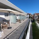4) Finikas Lofts, 1. sprat, 4 osobe, soba sa galerijom, sa francuskim ležajem (1,60 m) i na galeriji 2 singl ležaja, kupatilo sa tuš kabinom, opremljena čajna kuhinja, veliki balkon sa pogledom na baštu, parking.