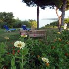 Roštilj je najomiljenije mesto posle plaže, a tu je i spoljna trpezarija i veliki frižider. U dvorištu se nalazi raznovrsno cveće, cvetne leje, žbunje i drveće, u idealnoj harmoniji sa borovom šumom koja se proteže do same obale.
